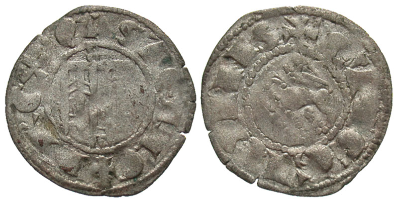 SPAIN, Castille and Leon. Fernando IV el Emplazado, 1295-1312 AD. Billon Pepion (0.72 gm) of Burgos. Castle / Lion. FAB.319 Toned aVF.