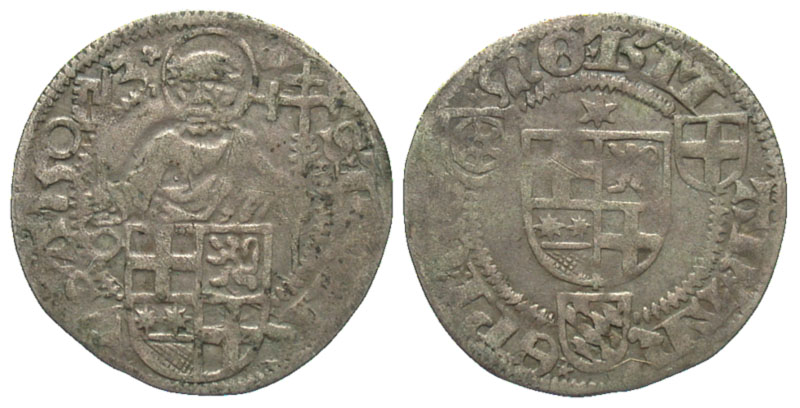 GERMANY, Koln. Herman v. Heissen, 1480-1508 AD. AR Schilling (1.10 gm), 1503. St. Peter with keys and cross over shield / One large and three small shields of arms. Saur.2748. Toned aVF.