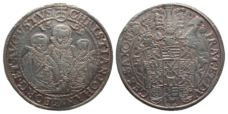 Lot 24-321. GERMAN STATES. Saxony. Christian I, Johann Georg and August, 1591-1601 AD. AR Taler