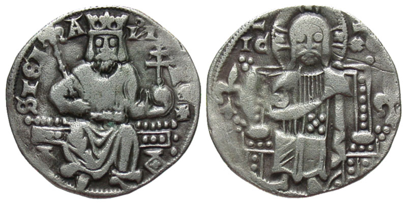 SERBIA, Stefan VI Urosh II Milutin, King, 1282-1321 AD. AR Grosch (1.79 gm). King enthroned holding scptre and orb / Christ enthroned facing. Jov.7.14. Toned VF. Scarce.