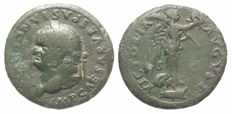 Lot 25-076. Vespasian. A.D. 69-79. Æ as. Rome mint, Struck A.D. 77-78.
