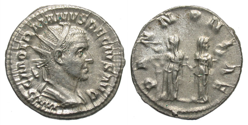 Lot 25-100. Trajan Decius. A.D. 249-251. AR antoninianus. Rome mint, Struck A.D. 250.