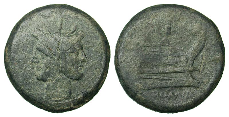 Lot 1-120. Anonymous. after 211 B.C. Æ as. Uncial standard. Rome. Ex Goodman collection.