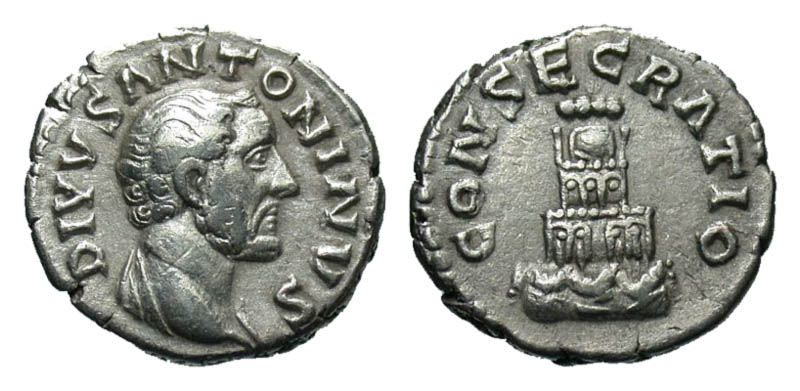 Lot 27-136. Divus Antoninus Pius. Died A.D. 161. AR denarius. Rome mint, Struck A.D. 161.