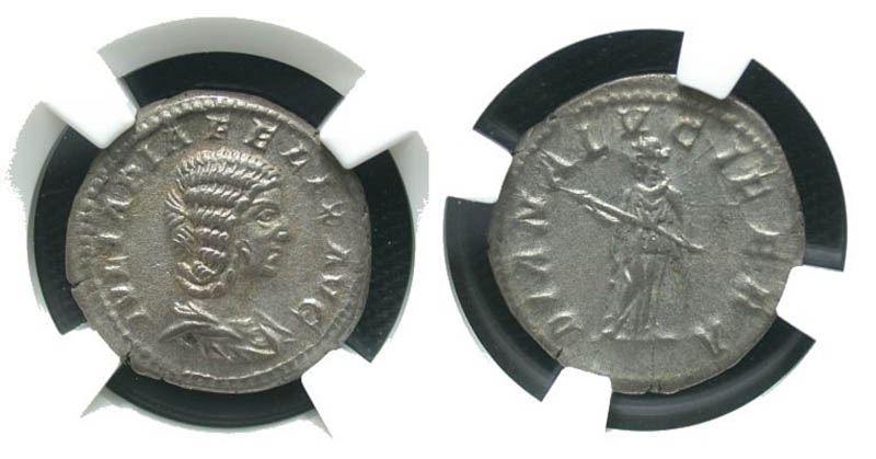 Lot 27-143. Julia Domna. Augusta, A.D. 193-217. AR denarius. Rome mint, Struck A.D. 211-215. NGC Certified