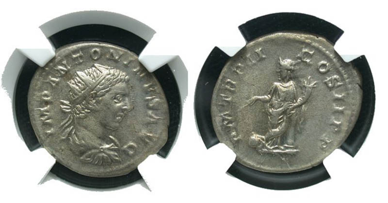 Lot 27-149. Elagabalus. A.D. 218-222. AR antoninianus. Rome mint, Struck A.D. 219. Scarce. NGC Certified.