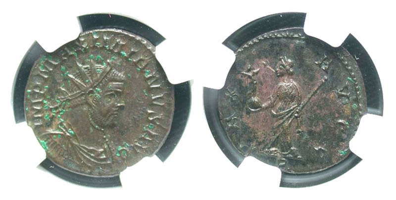 Maximianus. First reign, A.D. 286-305. Æ follis (3.58 g). Lugdunum mint, Struck A.D. 291-292. IMP MAXIMIANVS AVG, radiate, draped and cuirassed bust right / PAX AVGG, Pax standing left, holding Victory on a globe and transverse scepter, B in exergue. RIC 399. Ch AU. NGC certified and graded Ch AU; Strike 5/5, Surface 3/5.