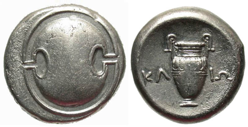 Lot 28-016. Boiotia, Thebes. Ca. 395-338 B.C. AR stater. Struck circa 368-364 B.C. Kali-, magistrate.