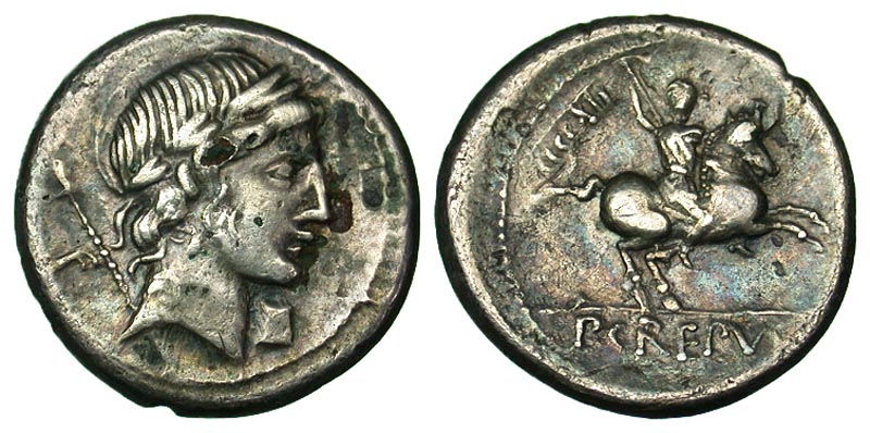 Lot 1-128. P. Crepusius. 82 B.C. AR fourrée denarius. Ex Goodman collection. Rome.