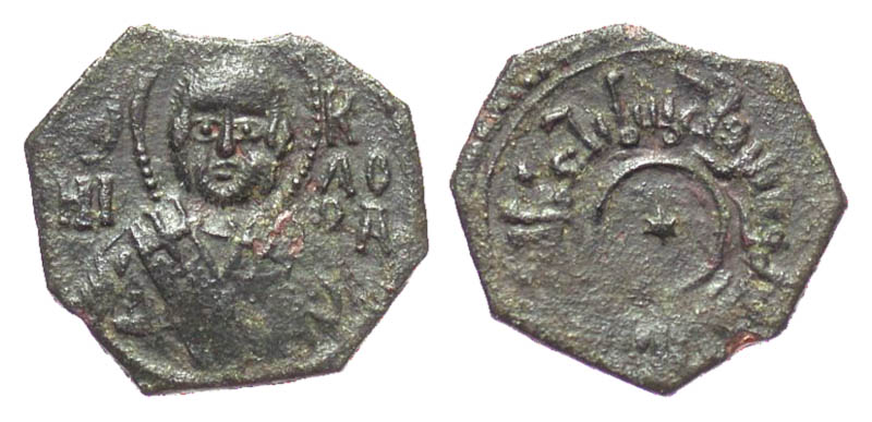 Lot 28-150. Italy, Sicily. Ruggero II. 1130-1154. Æ follaro. Bari mint, Dated A.H. 354 = A.D. 1139/40.