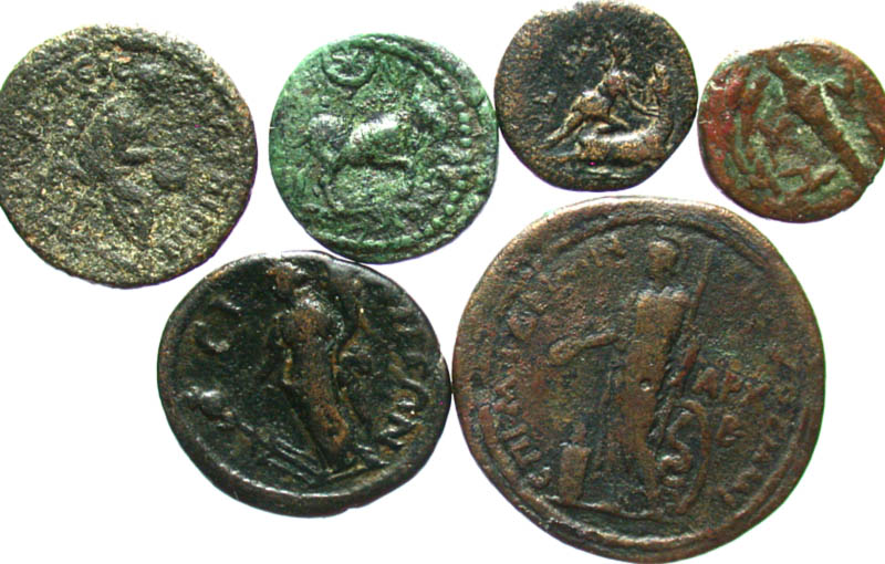 Lot 28-166. Lot of 6 Roman Provincial Coins.