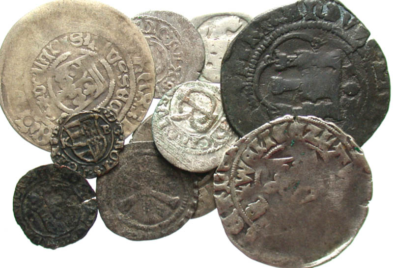Lot of 11 Medieval Coins. All different types, cities, and denominations, unidentified. All low grade.
