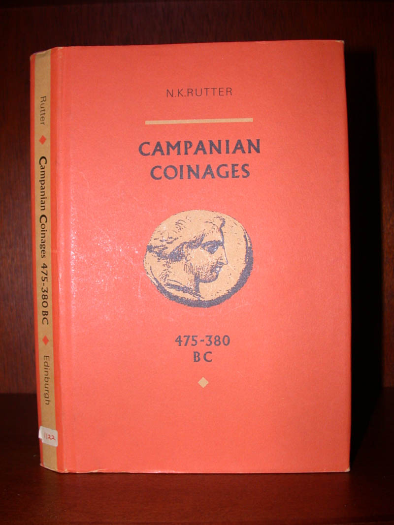 Campanian Coinages, 475-380 BC; Rutter. Edinburgh University Press, 1979. 196 p. with 34 plates. Minor scuff marks on the dust jacket but the interior is excellent.