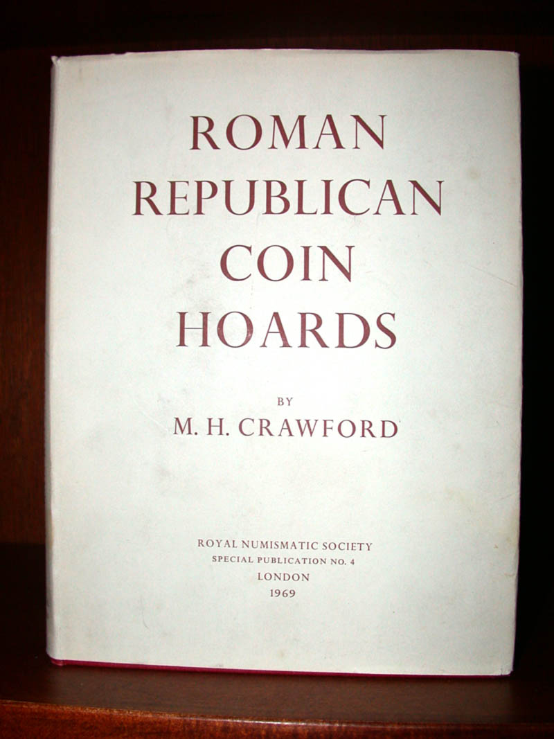 Roman Republican Coin Hoards; Crawford. RNS, 1969. 170 p. with three plates. Some staining on the dust jacket but the interior is pristine.