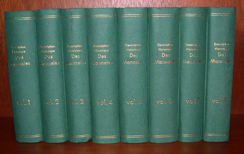 Cohen; Description Historique Des Monnaies, Complete Set. 1976 reprints. No dust jackets. Spines are firm. The pages are crisp.This is a very heavy set of books. Shipping within the US will be via media mail, international mail may prove to be very expensive. Please contact me for international rates before bidding.