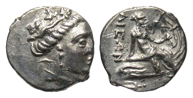 EUBOIA, Histiaia. 267-168 BC. AR Tetrobol (2.29 gm). Head of nymph Histiaia / Histiaia seated on galley holding mast. SNG.Cop.531v. Toned VF+. [Est. $225.]
