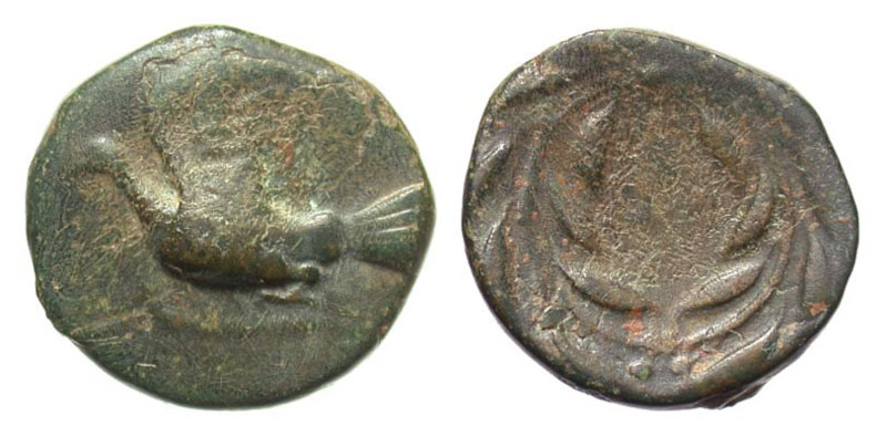 SIKYONIA, Sikyon. 330-305 BC. AE17 (3.34 gm). Dove flying / Wreath. BCD.305.5. Warren.1998.11b (this coin). aVF, olive brown patina. Rare. Ex. BCD collection. [Est. $135.]