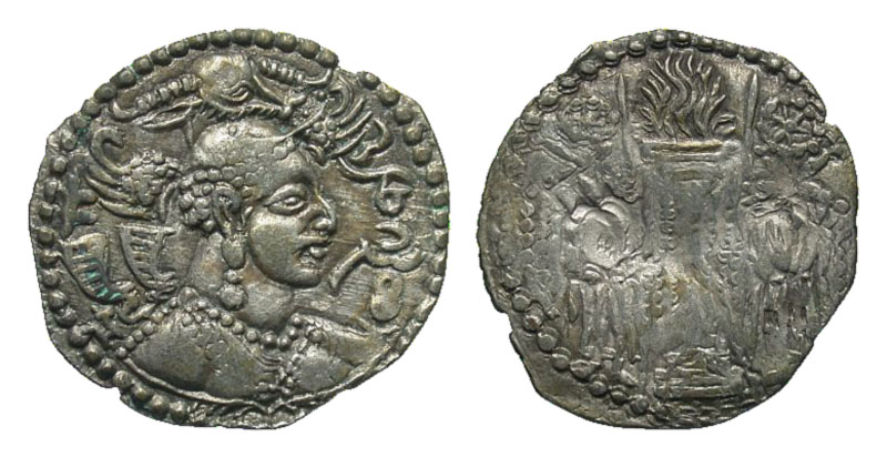 HEPHTHALITES. Napki Malka series, 475-575 AD. AR Drachm (2.88 gm). Crowned draped bust / Fire-altar with attendants. M.1502-6 Toned VF+, typical weak reverse. [Est. $250.]