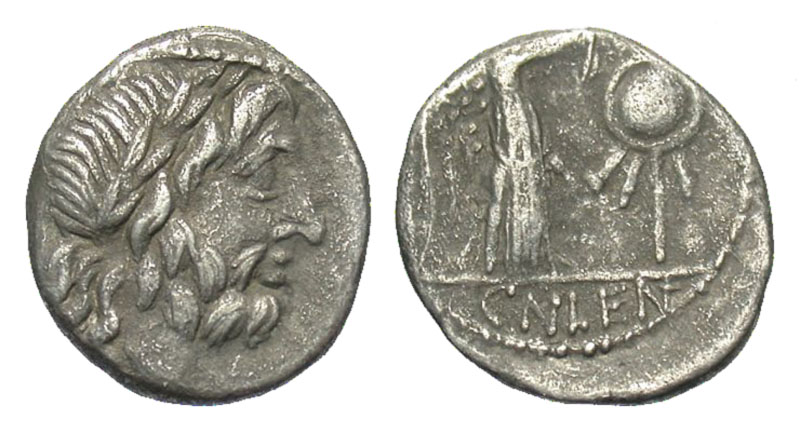 Lot 29-171. ROMAN REPUBLIC. Cn. Lentulus Clodianus, c. 88 BC. AR Quinarius