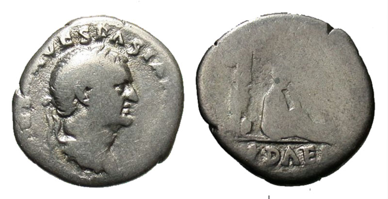 VESPASIAN, 69-79 AD. AR Denarius (2.89 gm). Laureate head / Jewess seated in attitude of mourning under trophy, AEJUDAEAAE. RSC.226. RIC.15. RIC.II.2. Fine. Refers to the defeat of the Jewish revolt. [Est. $110.]