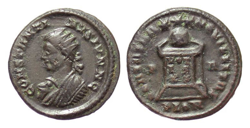 CONSTANTINE II, 337-340 AD. AE Follis (3.27 gm) of London. Radiate and draped bust / Votive inscription on altar. RIC.259 (R2). aXF. Rare. [Est. $150.]