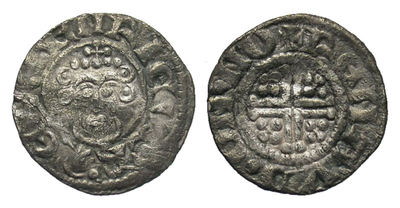 ENGLAND. John Lackland, 1199-1216 AD. AR Penny (1.27 gm) of Norwich, class 5b2. RENAVD ON NO. Crowned bust facing holding sceptre / Short cross with crosslets in angles. S.1351. Mass.1568v. Toned aVF, scuffs. ex Jim Sazama coll. [Est. $250.]