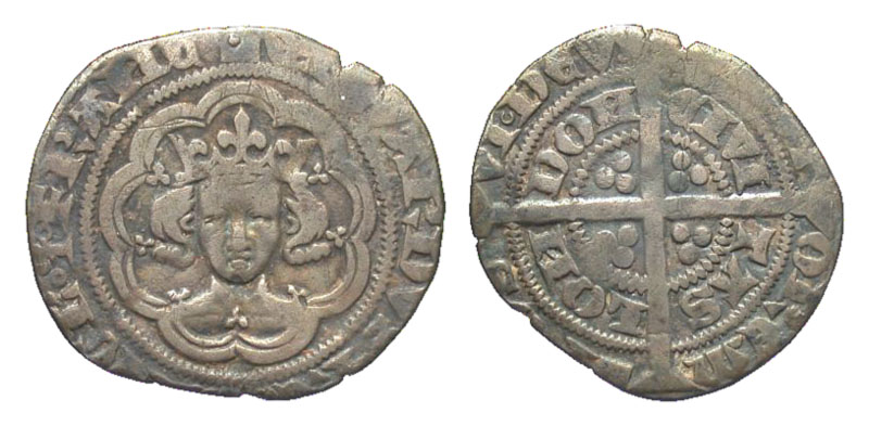 ENGLAND. Edward III, 1327-1377 AD. AR Halfgroat (2.19 gm) of London, Pre-Treaty coinage, cl. C, 1351-2. Crowned bust facing in tressure / Long cross with three pellets in each angle. S.1574. Toned aVF. [Est. $250.]