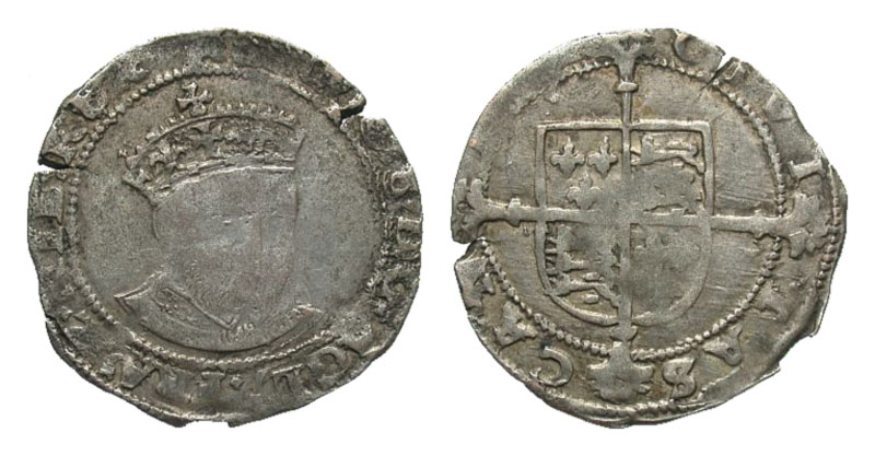 ENGLAND. Henry VIII, 1509-1547 AD. AR Groat (2.42 gm), Posthumous issue, bust 6, of Canterbury. Crowned bust facing / Shield of arms on long cross. S.2408. Toned Fine+., weak center. [Est. $350.]