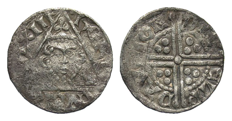 IRELAND. Henry III, 1216-1272 AD. AR Penny (1.22 gm) of Dublin, cl. Ia, DAVI. Bust in triangle holding sceptre, cinquefoil to rt. / Long cross with three pellets in each angle. S.6242. Toned Fine+. [Est. $200.]
