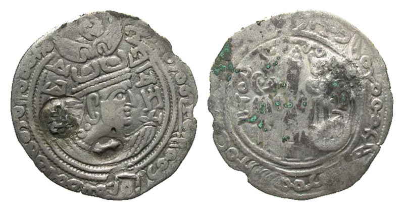 Lot 30-068. Hephthalites. Vakhu Deva. Ca. 720 A.D. AR drachm. Mint in Zabulistan or Seistan.
