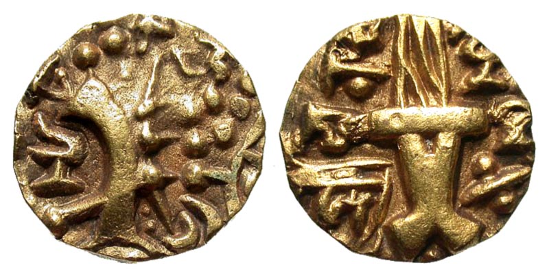 Lot 30-073. India. Vinayaditya. late 5th century A.D. AV dinar. Jammu-Kashmir mint.