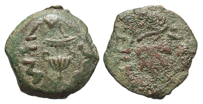 Lot 30-079. First Jewish War. 66-70 C.E. Æ prutah. Year 2 = 67/68 C.E..