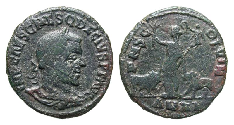 Lot 30-083. Moesia Superior, Viminacium. Trajan Decius. A.D. 249-251. Æ as. Dated year 11 (A.D. 249/50). Scarce type.