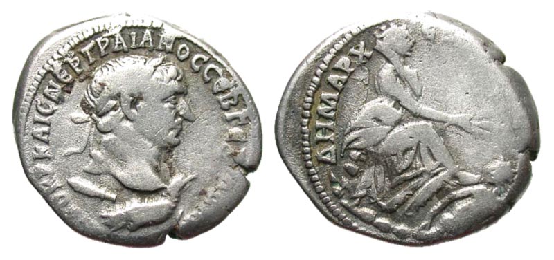 Phoenicia, Tyre. Trajan. A.D. 98-117. AR tetradrachm (26.7 mm, 13.30 g, 4 h). Year 17 = A.D. 112-113. AVTOKP KAIC NEP TPAIANOC CEB ΓEPM ΔAK, laureate head right, club and eagle below / ΔHMAΠX EΞ IZ YΠAT ς, Tyche seated right holding poppies and grain ears, river god Orontes swimming right below. Prieur 1500; McAlee 472. Fine.