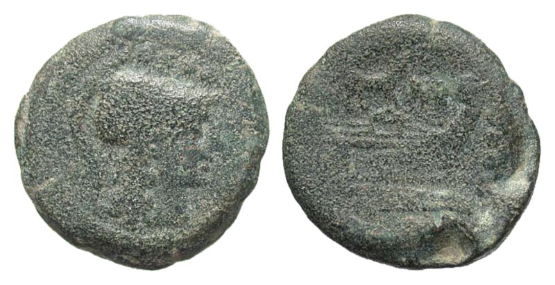 Anonymous. 169-158 B.C. Æ triens (24.5 mm, 11.71 g, 7 h). Rome mint. Helmeted head of Minerva right, four pellets above / ROMA, prow of galley right; four pellets to right, ass standing right above. Crawford 195/3; Sydenham 298b. aFine.