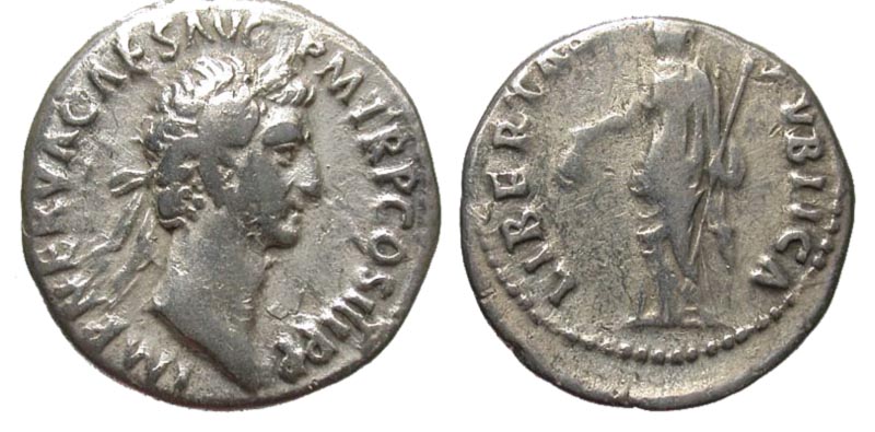 Lot 30-146. Nerva. A.D. 96-98. AR denarius. Rome mint, Struck A.D. 97.