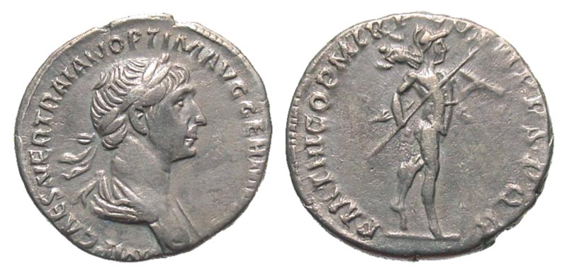 Lot 30-151. Trajan. A.D. 98-117. AR denarius. Rome mint, Struck A.D. 116-17.