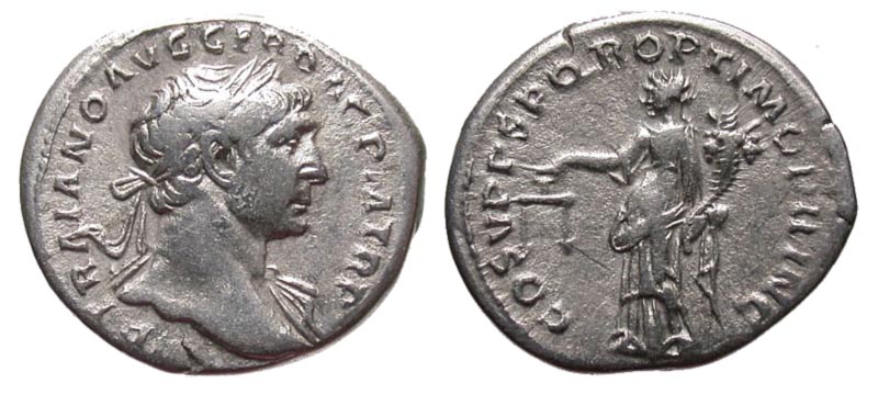 Lot 30-153. Trajan. A.D. 98-117. AR denarius. Rome mint, Struck A.D. 107-111.