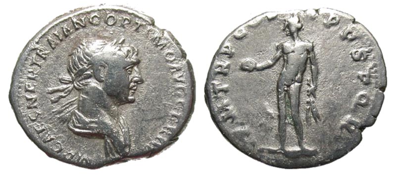 Lot 30-155. Trajan. A.D. 98-117. AR denarius. Rome mint, Struck A.D. 114-117.