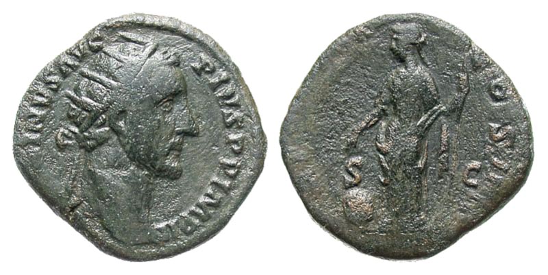 Lot 30-163. Antoninus Pius. A.D. 138-161. Æ dupondius. Rome mint, Struck A.D. 155-156.