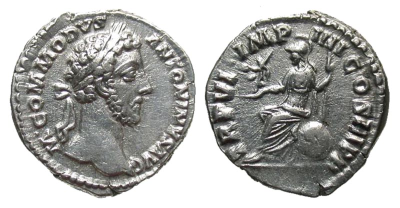 Lot 30-191. Commodus. A.D. 177-192. AR denarius. Rome mint, Struck A.D. 180-181.