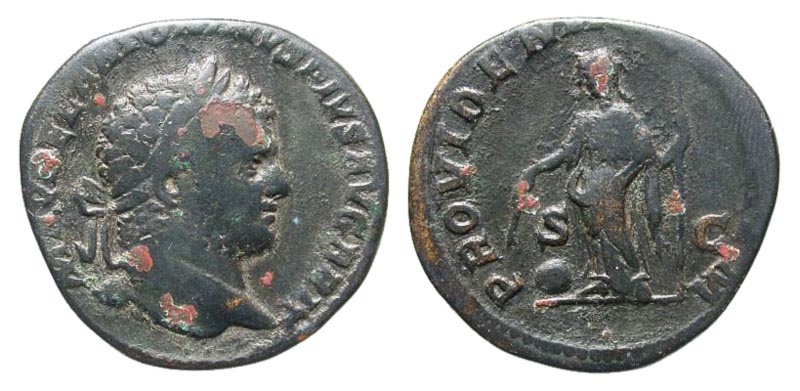 Caracalla. A.D. 198-217. Æ sestertius (30.5 mm, 21.0 g, 12 h). Rome mint, Struck A.D. 213. M AVREL ANTONINVS PIVS AVG BRIT, laureate head right / PROVIDENTIAE DEORVM, S-C, Providentia standing left, holding wand over globe, and long scepter. RIC 511a; BMCRE 242. aVF.