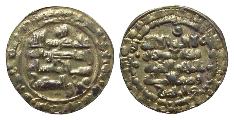 Buwayhid. Baha' al-Dawla Abu Nasr. 379-403/989-1012. AV dinar (25.9 mm, 3.96 g, 11 h). Suq al-Ahwaz mint, 397 A.H.. Kalima in four lines across field, monogram above; Quran 30:4-5 in outer margin, mint formula and AH date in inner margin / Continuation of Kalima across field, âli-âillahâ above, name of al-Radi below; âSecond Symbolâ (Quran 9:33) in outer margin. Treadwell 397; Album 1573. VF.