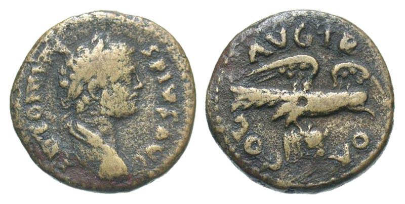 Troas, Alexandria Troas. Elagabalus. A.D. 218-222. AE 23 (22.5 mm, 8.29 g, 6 h). Scarce. ANTONINVS PIVS AVG, laureate and draped bust right / COL AVG TROA, eagle with spread wings, standing facing on a bucranium. SNG Cop 152; SNG Von Aulock -. aVF, porous.