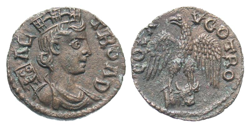 Troas, Alexandria Troas. Civic Issue. Mid 3rd Century A.D Æ 21 (20.5 mm, 4.31 g, 3 h). COL TROAD, turreted and draped bust of Tyche right, vexilla at her shoulder / COL AVG TRO, eagle with spread wings, standing facing on a bucranium. Bellinger A 491; SNG Von Aulock 1467; SNG Cop 115. EF.