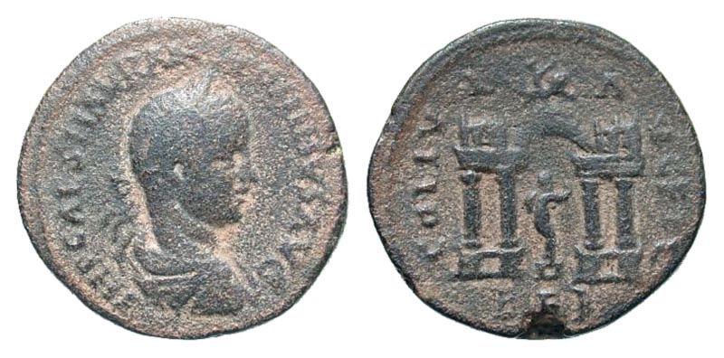 Phoenicia, Berytus. Elagabalus. A.D. 218-222. Æ 30 (30.4 mm, 17.39 g, 12 h). IMP CAES MAVR ANTONINVS AVG , laureate, draped and cuirassed bust right / COL IVL AVG / BER, Statue of Marsyas before tetrastyle gateway surmounted by Atargatis on lion. SNG Copenhagen 117; Lindgren 2269. gFine, minor porosity.