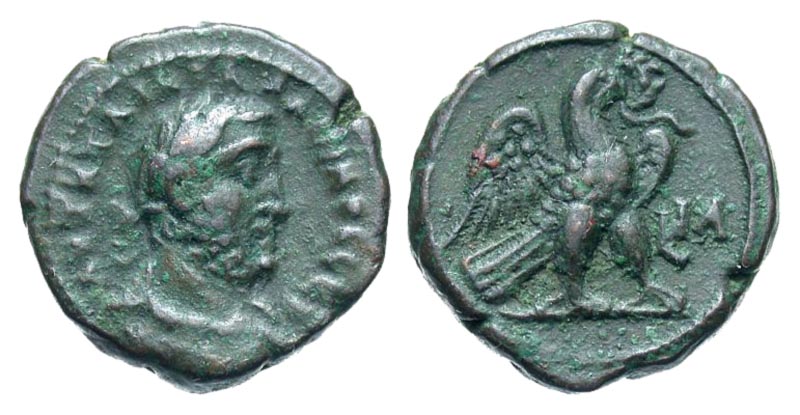 Egypt, Alexandria. Gallienus. A.D. 253-268. BI tetradrachm (22.2 mm, 9.37 g, 12 h). Dated year 11 = A.D. 163/4. AK Π Λ IOV ΓAΛΛIHNOC EVEVC, laureate and cuirassed bust right / L IA, eagle standing right, wreath in its beak, with wings spread. Milne 4095; Curtis 1594; Emmett 3808. VF.