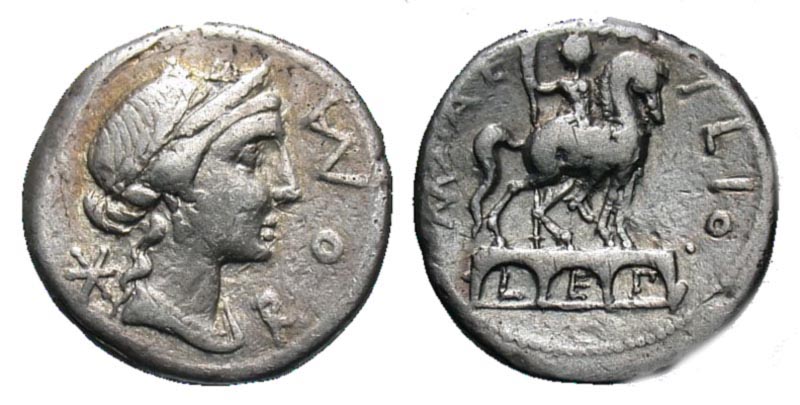 Lot 31-116. Mn. Aemilius M.f. Lepidus. 114-113 B.C. AR denarius. Rome mint.