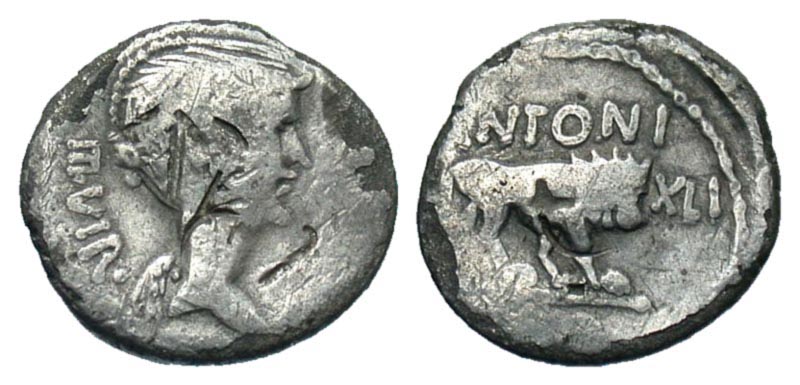 Lot 31-130. Mark Antony. 43-30 B.C. AR quinarius. Lugdunum mint, Struck 42 B.C.