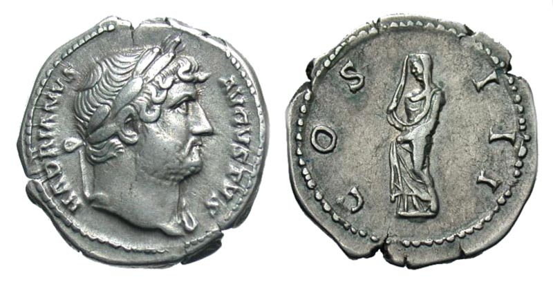 Lot 31-149. Hadrian. A.D. 117-138. AR denarius. Rome mint, Struck A.D. 125-128.